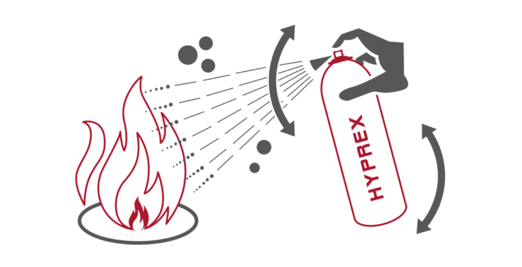 All you need to do is aim the Hyprex fire extinguisher at the base of the fire at a maximum distance of up to three meter. Within seconds you see the effect!
