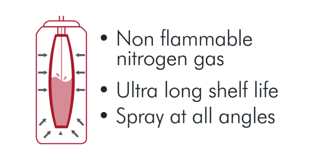 The "Bag on Valve" is an advanced, Swiss-made canning system which ensures that Hyprex has a longer shelf life and can be used in any angle or direction, unlike traditional fire extinguishers.