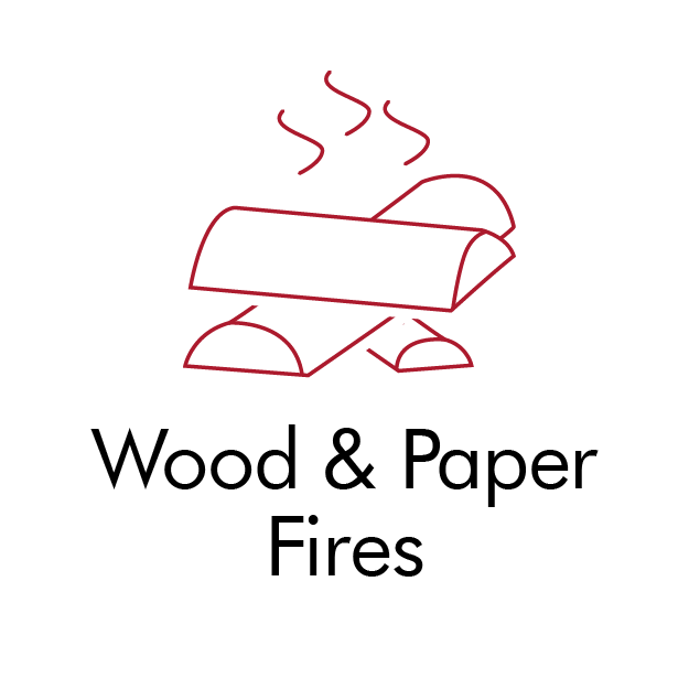 Fires caused by solids like wood and paper, textiles, plastics, rubber (Class A)