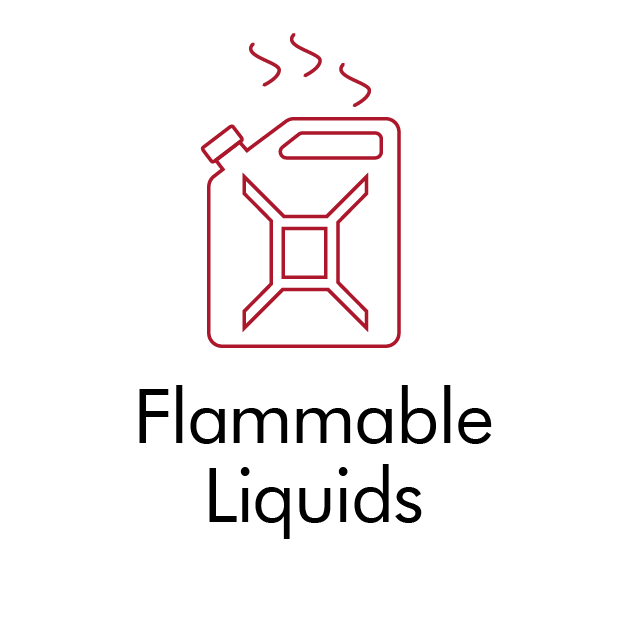 Flammable liquids like petrol, oil, grease, diesel, but also solvents, paints